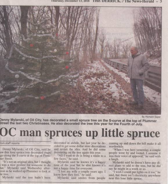 In 2016 I took a photo of the tree in the article above, calling it "The Charlie Brown Christmas Tree." Well, we know who decorated it the years after that, 2017 and this year. The tree grew a bit, but is still pretty small as the surrounding trees keep the little guy in shade a great deal of the time. It may be growing slowly, but it still looks good.