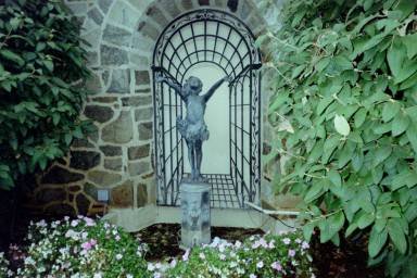The last job assignment I had in the eastern part of the State was at the Benjamin Fox Pavilion in Jenkintown, Montgomery County, Pennsylvania. This was on Valentine's Day 1989. I had been on other assignments at the Pavilion in previous years, and had taken notice of this statute of a girl that presided over the garden inside the Pavilion's courtyard. I first noticed her in early 1986, so she had been a fixture in that small garden in the courtyard for some years before I showed up. After moving back to Western Pennsylvania, I would still get some assignments in the southeastern area, and went out there for some vacations to visit some friends I made out there from 1985-1989. During all of these years, the girl was part of the courtyard in the Pavilion, but the organization that now owns the Pavilion is thinking about replacing her. The British have a superstition that they will always rule Gibralter as long as there are Barbary Apes living there. I think everything will be okay as long as the girl stays in her location in the garden. Yes, it is a superstition, but she hasn't been her traditional spot since sometime after the above photo was taken in 2010. You don't need a PHD in current events to know things are not going very well.