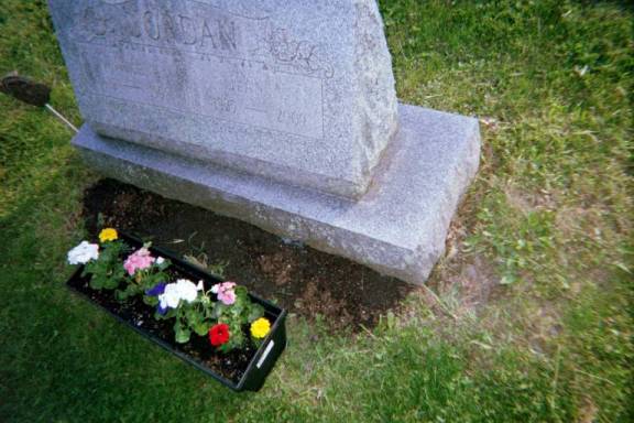 This year's work at the family's cemetery section in Brady's Bend, Pennsylvania involved more planning and preparations than previous years. Because of the problem of soil erosion in front of some of the headstones, caused by annual plantings, the work would include adding topsoil and grass seed to those areas. Flowers would be displayed in planters, which means we have to hope no one walks off with them! It is necessary to promote recovery of the soil on the gravesites. Some cemeteries are banning plantings directly on the graves because of this problem. With weather in May unsettled in recent years, and cemetery crews sometimes not able to cut the grass for weeks because of rain, a push mower was added to the tools. The mower was ordered through Walmart, which was selling the unit for $65.00, a real bargain. I found room for it in the hall closet without even having to remove the handle. It turned out the mower was needed as the grass was too long to make the plot look finished after cleaning the headstones, raking, and setting up the planters. My father usually cut the grass with a power mower when we decorated the graves in past years, but a push mower is quite adequate for this task and a good substitute for a daily workout.