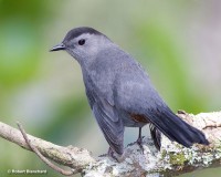 Work hasn't taken me to York, Pennsylvania very much since spending about three weeks there after Thanksgiving in 1993. Spending another three weeks there this spring wasn't anything too special until early the first morning in the parking lot of the Holiday Inn I heard a particularly loud, but melodious bird's song. Following the sound, it turned out to be a Gray Catbird, my favorite North American bird. It was perched on a handicapped parking sign, imitating what sounded like snatches of a robin's song, some golden finch, and some other warbles and whistles, with a few grackle calls mixed in. By the looks of the white and black stains on some of those handicap parking signs, the catbird appeared to use the signs a lot for singing perches, so I went back at dusk to see if the bird showed up. It did, singing similar songs as the one it performed that morning. Trying again at dawn twilight, the catbird was back again. The bird was in good voice the second morning, as I could hear the song from the second floor of the hotel as I walked down the hallway. Each time I listened, I would stand a little closer. Sometimes the catbird would move to another sign, but keep up the singing. On Wednesday, more guests showed up at the hotel for a Hot Rod show that takes place every year. With more strange humans around, the catbird moved the daily concerts to a tree branch. It took some time to find the bird, but once it was located, it looked down at me while it sang its song that morning. This Friday morning, my last day at the Holiday Inn, the catbird was singing from the thick tangle of trees and brush at the edge of the full parking lot while I loaded up the car to leave. I tried to see the bird up in the tree, but gave up as the light was so dim, but as I headed for the door, the catbird landed on one of the handicapped parking signs and started singing again. I was only a few feet away from the bird, at the door to Entrance B, while listening for a few minutes. After awhile, I applauded quietly, sent the catbird a few whistles, and opened the door. The catbird flew off just as the door opened.
