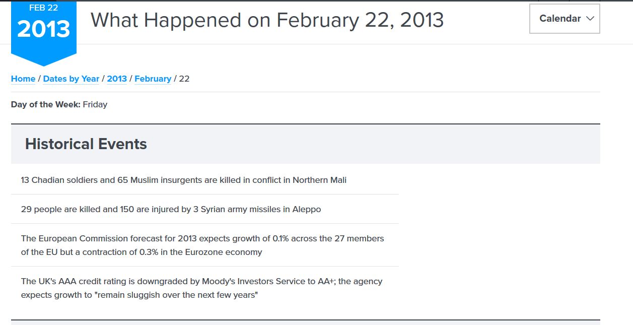 Often when someone experiences a landmark date in life, we don't always wonder what other people were doing at the same time. With about nine billion of us on the planet, people are experiencing their own events, some really big, and some not as much. I searched out the date, February 22, 2013, my last day of my nearly 28 years on that job, and found out what some other people were doing worldwide.