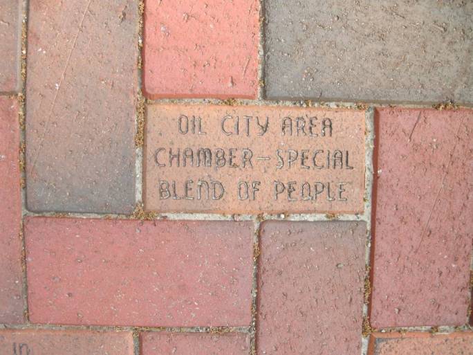 There are many more of these bricks with most of them to be found on both sides of Elm Street on North Side, which was once the old Downtown District of Oil City. After moving here in February 1989, I got to experience some of the old Downtown, which had many shops and restaurants to serve the employees of Quaker State Motor Oil's headquarters building, First Seneca Bank's headquarters, a large Mellon Bank building, and all of the small businesses and professional offices that were once in operation there. Oil City had a Woolworth store, a Hallmark store, and a Holiday Inn. Everyday, the sidewalks were full of people going to lunch and using part of the time to shop or run household errands. It was a busy place, but today is a place most people drive through to go somewhere else. Most of the commercial activity has left the North Side and moved to Cranberry near the Walmart that was built there in the early 2000s. The North Side downtown today generates controversies about what to do with buildings that are falling apart and a parking structure that costs too much to repair and also too much to tear down. Among the signs of what the North Side once was are all the bricks people purchased to be placed along its sidewalks along with the closed shops and restaurants.