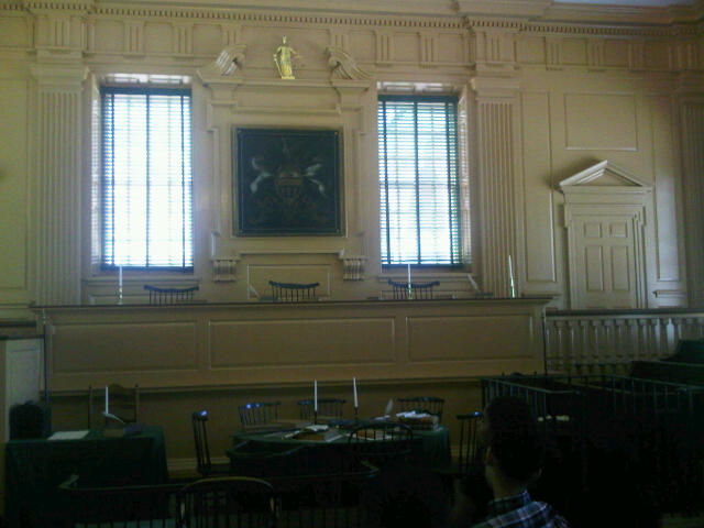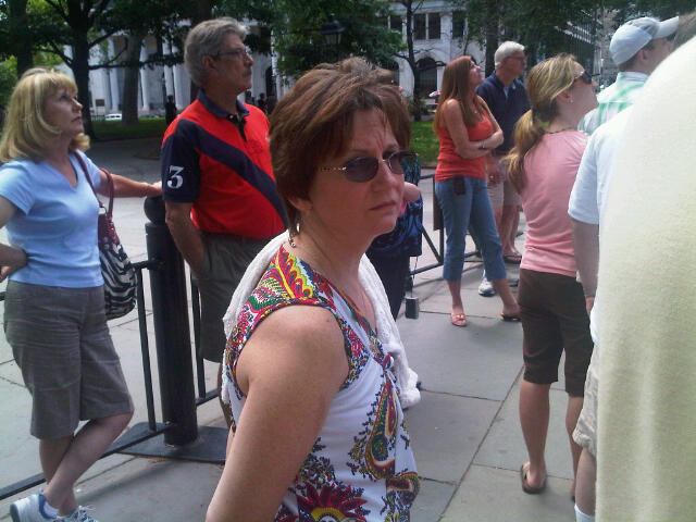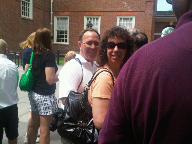 Just this past week, from June 13 until June 18, 2010, I attended a continuing professional education seminar in Philadelphia. I've been to the city many times, including a 1995 visit to the hotel we stayed in during the seminar, the Hyatt-at-the-Bellevue, or the old Bellevue-Stratford on Broad Street, which is in the Arts and Theater District. In fact, there is a Walk-of-Fame, that includes what appears to be copper plaques displaying the names of many noted Philadelphia performers in motion pictures, theater, popular music, and television. I took several close-ups of those, but they will have to be posted in a separate display later. Some of my friends were along, including "Peppermint Patty," "Mr. Keith," and many others who have not been mentioned anywhere in the Back Office. When we toured the historic sites, like Independence Hall, Carpenter's Hall, and the Constitution Center, I used my Blackberry to take those photos, so they are displayed first. The Walk-of-Fame display will have a plaque and a photo of the subject of the plaque right next to it. I couldn't use the Blackberry for those photos, but an analog camera as the Blackberry was losing its charge and I forgot to pack the charger. I did bring enough socks this time!